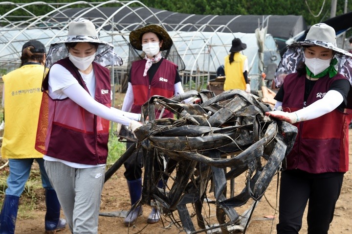 이날 에스알 노·사 임직원 20여명은 수도권 집중호우로 인해 원예하우스 85개동이 침수피해를 입은 성남시 탄천변 저지대 화훼농가를 찾아 파손된 비닐하우스 철거와 쓰레기 수거 등 수해복구 지원에 구슬땀을 흘렸다.