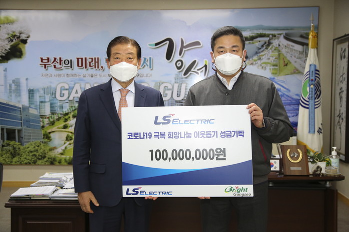 노기태 부산시 강서구청장은 “지역 소외계층 복지 사업에 관심을 가져 준 LS일렉트릭에 감사 드린다” 며 “성금은 코로나19로 더욱 어려움이 큰 취약계층 지원을 위해 소중히 사용하겠다” 라고 말했다.