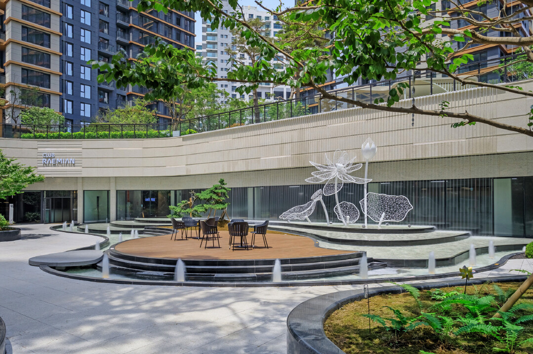 먼저 선큰정원을 조성해 한강 바람을 피할 수 있게 함과 동시에 안락한 휴게정원을 조성했다. 여기에 다양한 커뮤니티 시설을 배치해 쾌적한 공간 제공과 입주민 편의성을 높였다. 추가로 선큰이라는 음지의 생태 환경을 고려한 녹지공간과 청량한 수경시설, 침수 방지 배수 설계로 입주민 만을 위한 쾌적하고 아늑한 공간을 마련했다.