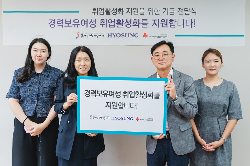 [하비엔=홍세기 기자] 효성이 지난 1일 서울시 종로구에 위치한 종로여성인력개발센터를 찾아 경력보유여성 취업 활성화 사업에 7000만 원을 전달했다.