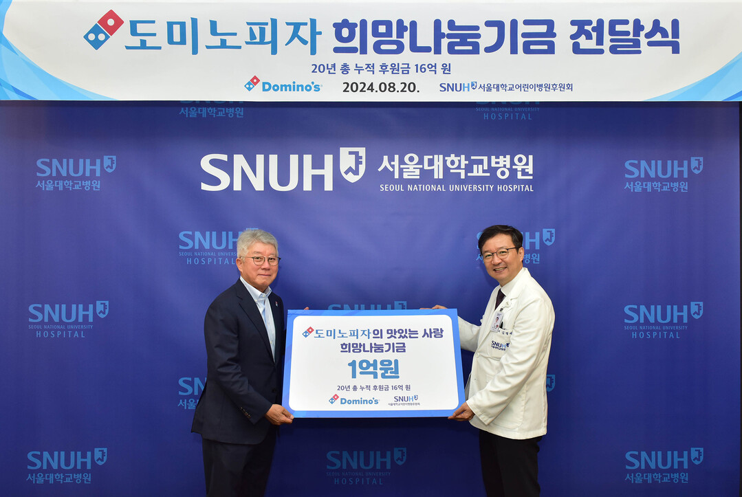 [하비엔뉴스 = 한시은 기자] 도미노피자는 지난 19일 서울대어린이병원에 1억원을 기부했다고 20일 밝혔다.
