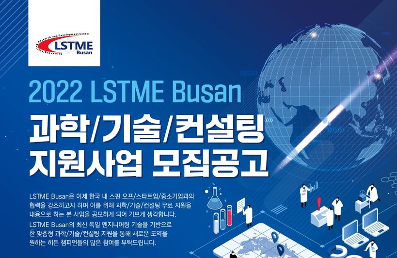 | ▲ LSTME Busan이 과학·기술·컨설팅 분야를 지원하는 ‘2022 LSTME Busan 지원사업’을 진행한다. [사진=LSTME Busan] |