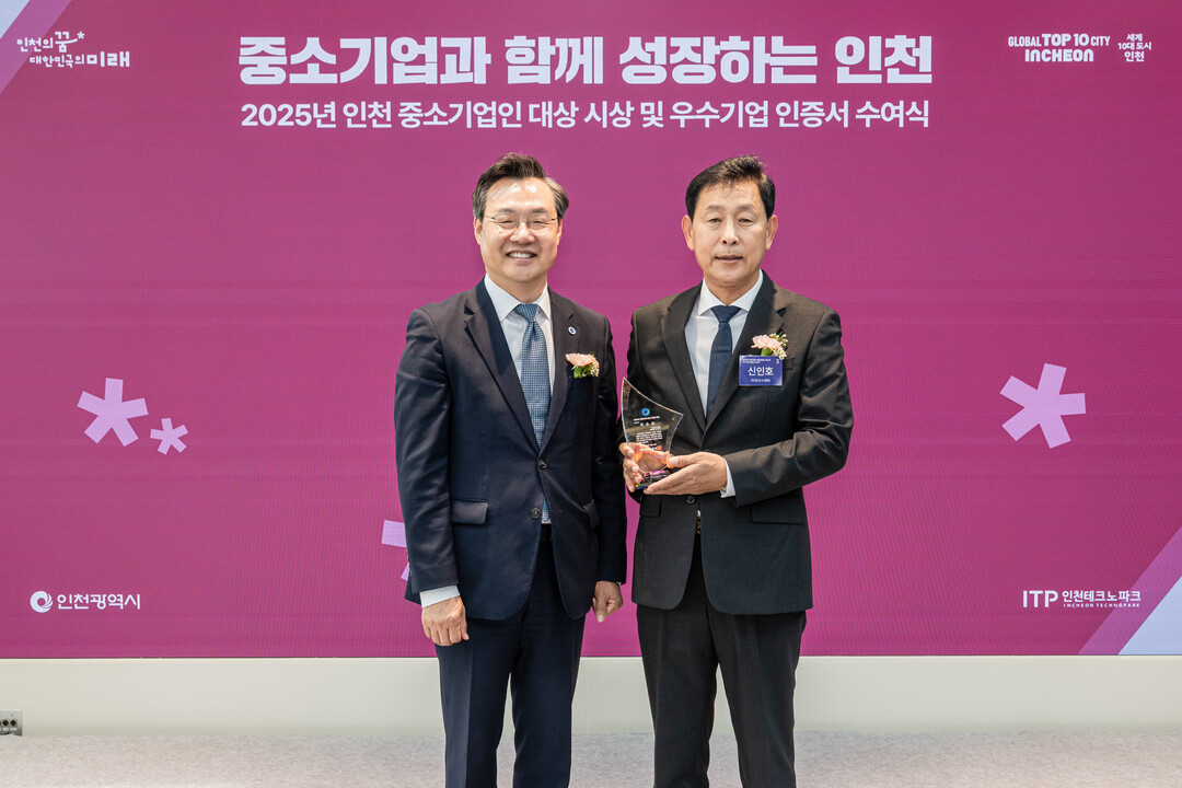 인천시는 지난 11월 미추홀타워 인천기업경영지원센터에서 인천시 중소기업인대상 시상식을 개최했다. 이번 행사는 지역 경제 활성화를 이끌어가는 중소기업인을 포상하고, 우수한 기술력과 성장 잠재력을 가진 중소기업을 발굴하여 단계별로 지원하기 위해 마련됐다.