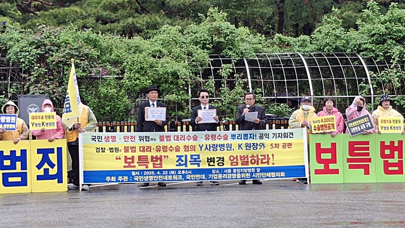 [하비엔뉴스 = 이정우 기자] 서울중앙지방법원이 소재하고 있는 서울 서초구 법원 앞에서는 '대리수술 관련 재판이 열리는 날이면 어김없이 다수의 시민단체들이 연합해 '유령·대리수술' 혐의로 재판이 진행 중에 있는 재판부에 대해 철저한 사실 규명과 재발 방지와 이들의 불법이 드러나면 솜방망이 처벌이 아닌 '보건범죄단속에관한특별조치법(보특법)'을 적용해 엄벌에 처해야 한다며 언론을 향해 기자회견과 집회를 이어가고 있다.