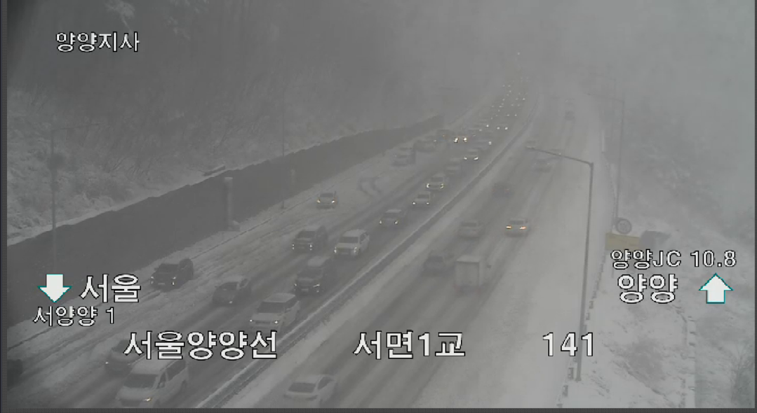 강원지역 기습폭설 차량 정체 모습 [사진=한국도로공사] |