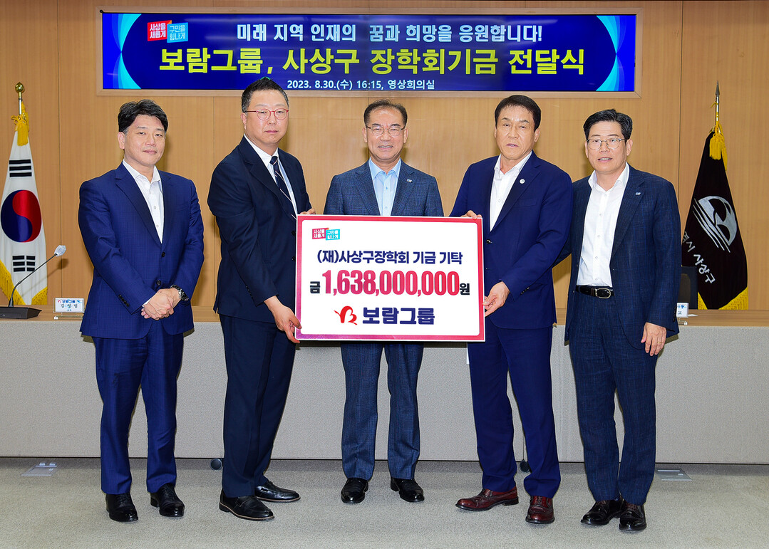 보람그룹은 지난달 30일 부산 사상구청에서 ‘지역인재육성을 위한 장학금 전달식’을 갖고 장학기금 약 16억원을 재단법인 부산사상구장학회에 전달했다고 5일 밝혔다. 이번 기부는 기존 부산 사상구 엄궁동에 보유하고 있던 토지 가치 상승분에 대해 지역사회 환원 차원에서 인재육성 장학기금으로 기탁하기로 한 것.