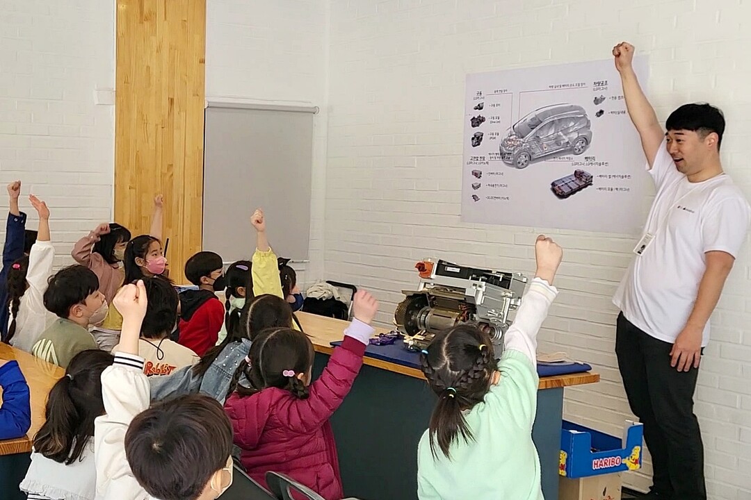 [하비엔뉴스 = 이길주 기자] LG마그나 이파워트레인(이하 LG마그나) 직원들이 초등학생들에게 전기차를 알리는 일일 선생님으로 나섰다.