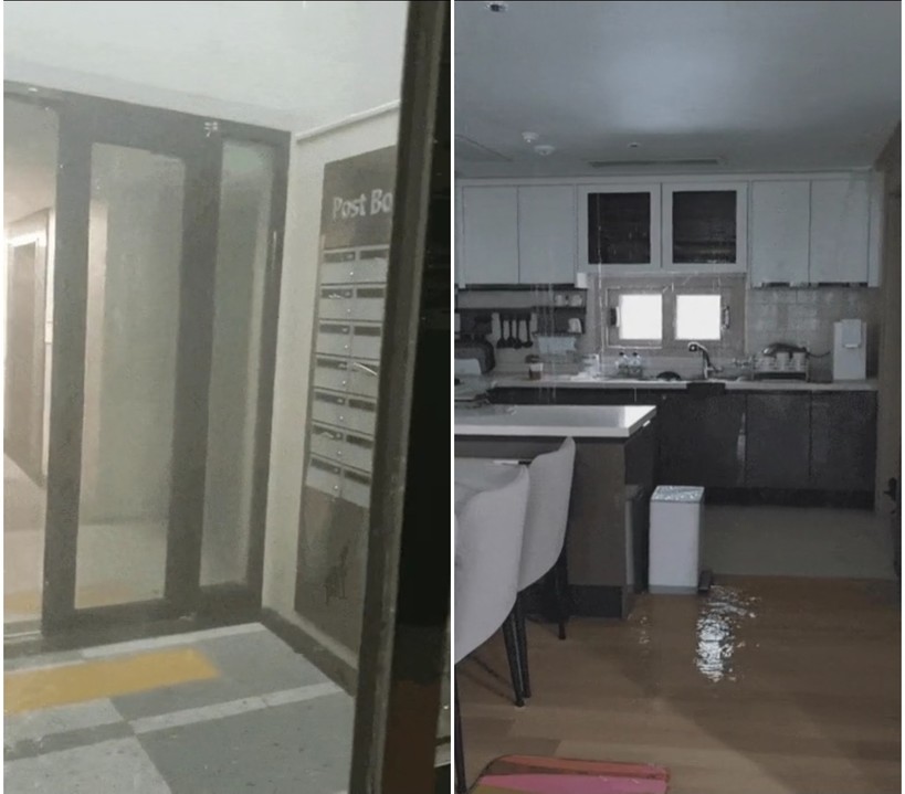 27일 대방건설과 디에트르 리버파크 입주민 등에 따르면, ‘디에트르 리버파크’ 3단지의 한 가구가 수도관이 동파돼 주방을 중심으로 천장 곳곳에서 물이 쏟아지는 영상이 온라인에 게재됐다. 누수는 아파트 내부 뿐만 아니라 3단지 1층 공동 현관문 천장에서도 발생했다.
