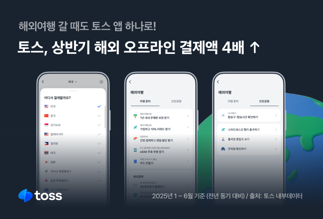 토스 관계자는 “올 상반기 해외 결제 거래액이 큰 폭으로 증가한 것은 여행에 필요한 여러 과정을 하나의 앱 안에서 자연스럽게 연결한 결과다”라며 “앞으로도 더 많은 사용자가 일상처럼 토스를 활용해 해외여행을 준비하고 즐길 수 있도록 서비스 경험을 계속 확장해 나갈 것이다”라고 말했다.