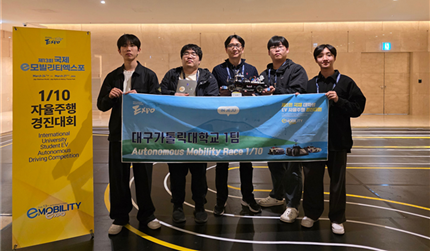 1/10 부문 대상을 수상한 대구가톨릭대학교 팀은 “차선 인식과 주변 차량 회피를 동시에 구현하는 과정이 가장 큰 도전이었다”며, “이번 대회를 통해 자율주행 제어 기술에 대한 이해를 한 단계 끌어올릴 수 있었고, 그 경험이 앞으로의 연구에 큰 자산이 될 것”이라고 밝혔다.