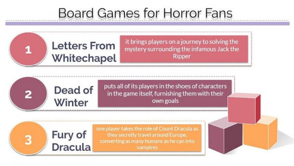 비디오 게임이 인기를 끌고 있지만, 보드게임을 찾는 마니아도 여전히 존재한다. 실제로 보드게임은 장르와 유형이 매우 다양한데, 특히 그중에서도 공포 보드게임은 일부 마니아에게 각광받는 장르다. 이와 관련, 호러 마니아를 흥분시킬 만한 인기 있는 공포 보드게임을 소개한다.